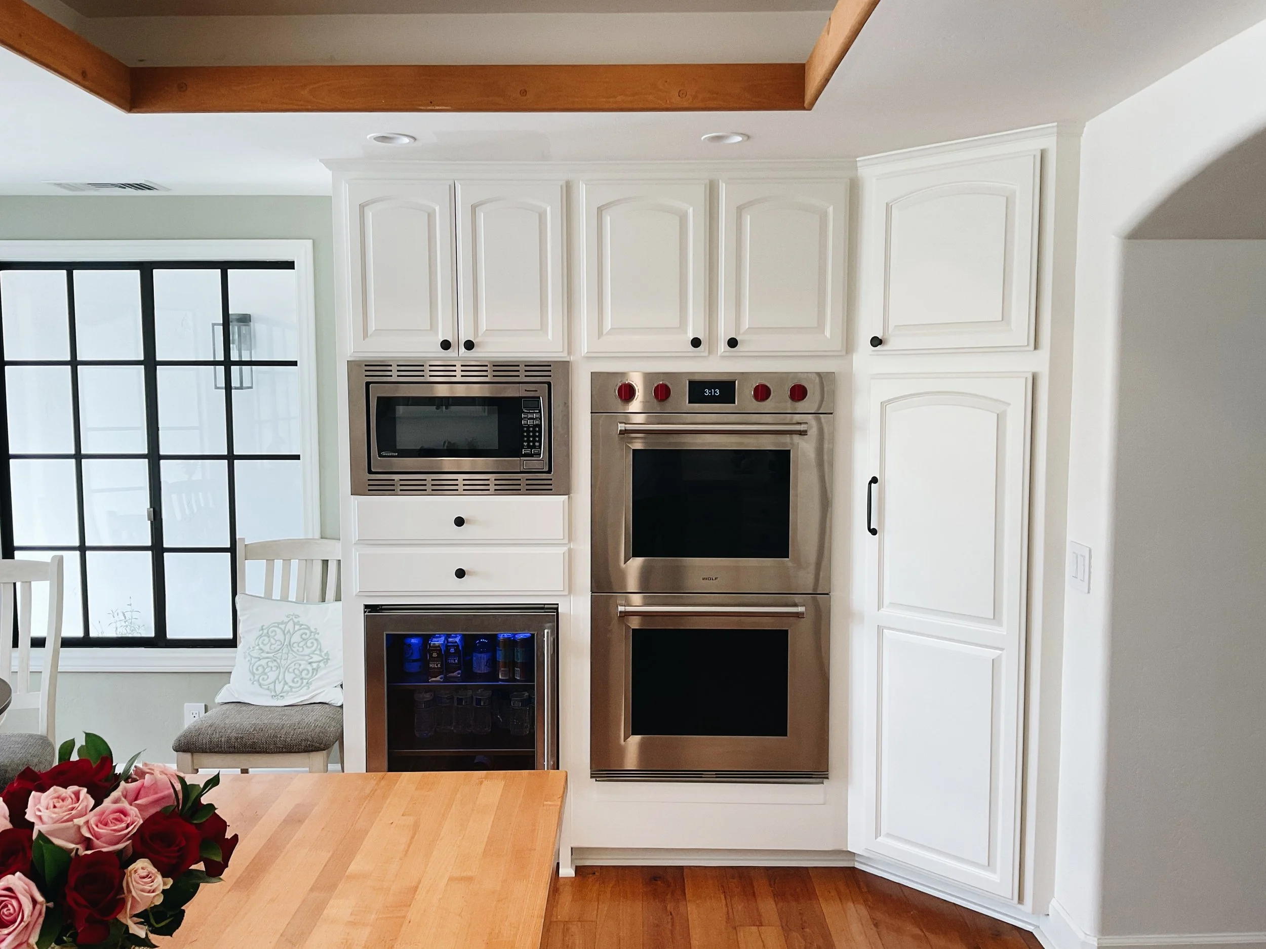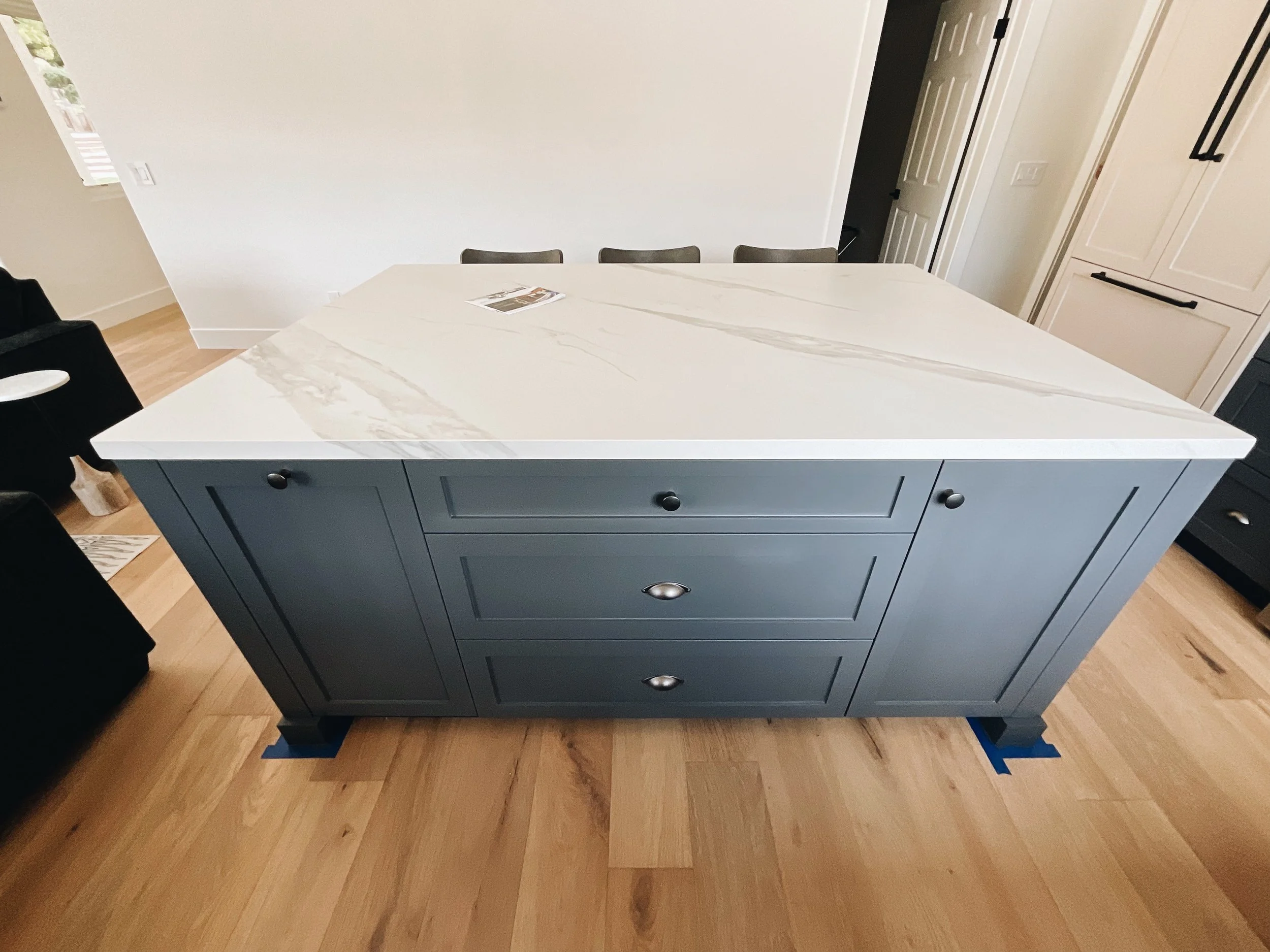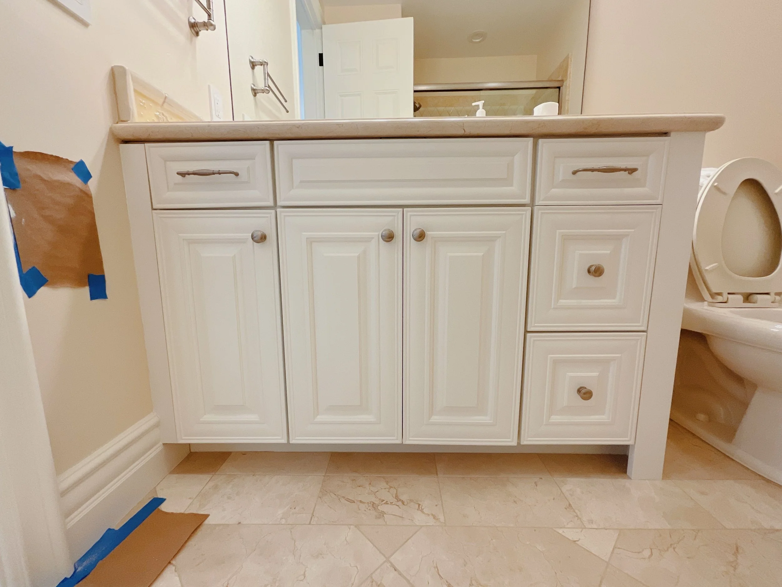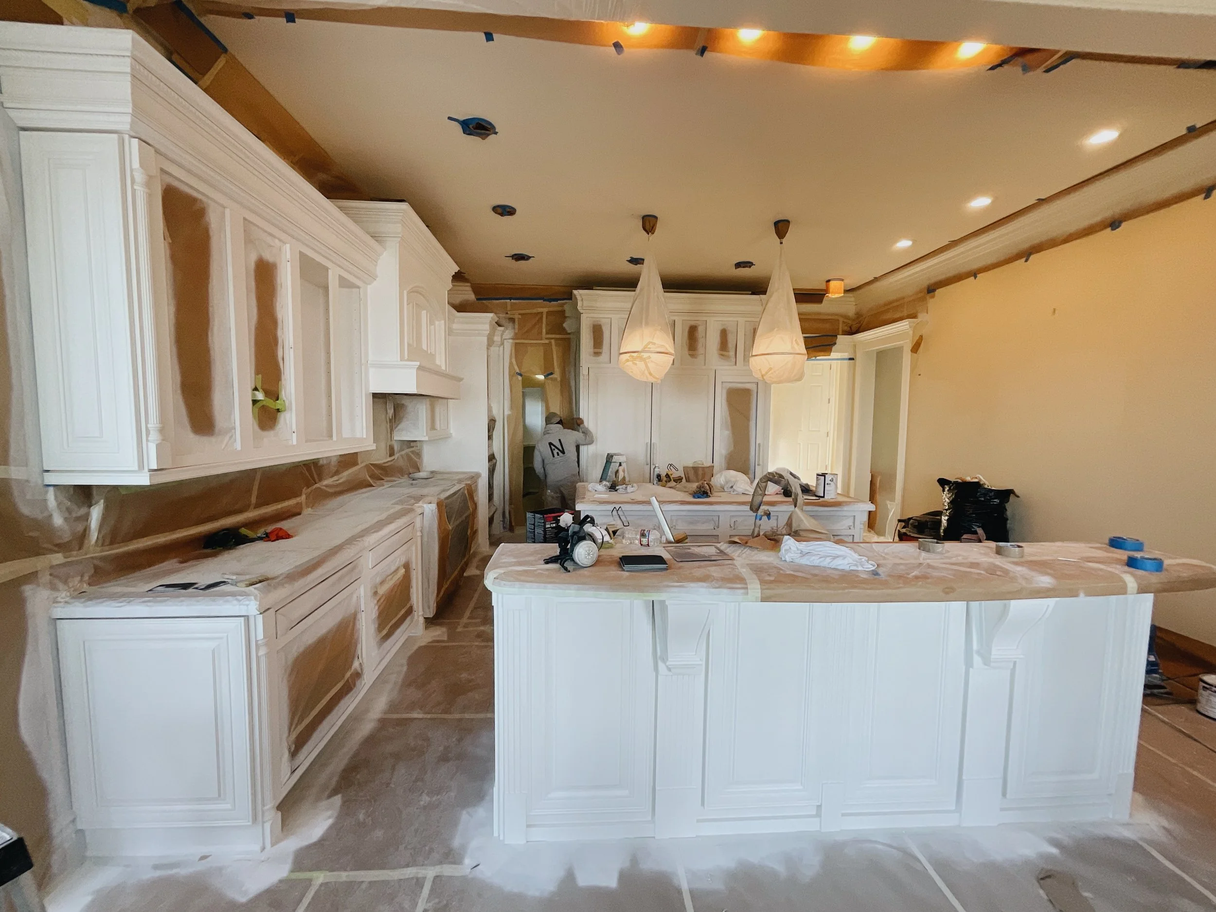 We aren’t there to paint floors, counters, or appliances. We make sure to seal those off. We only come to paint cabinets!