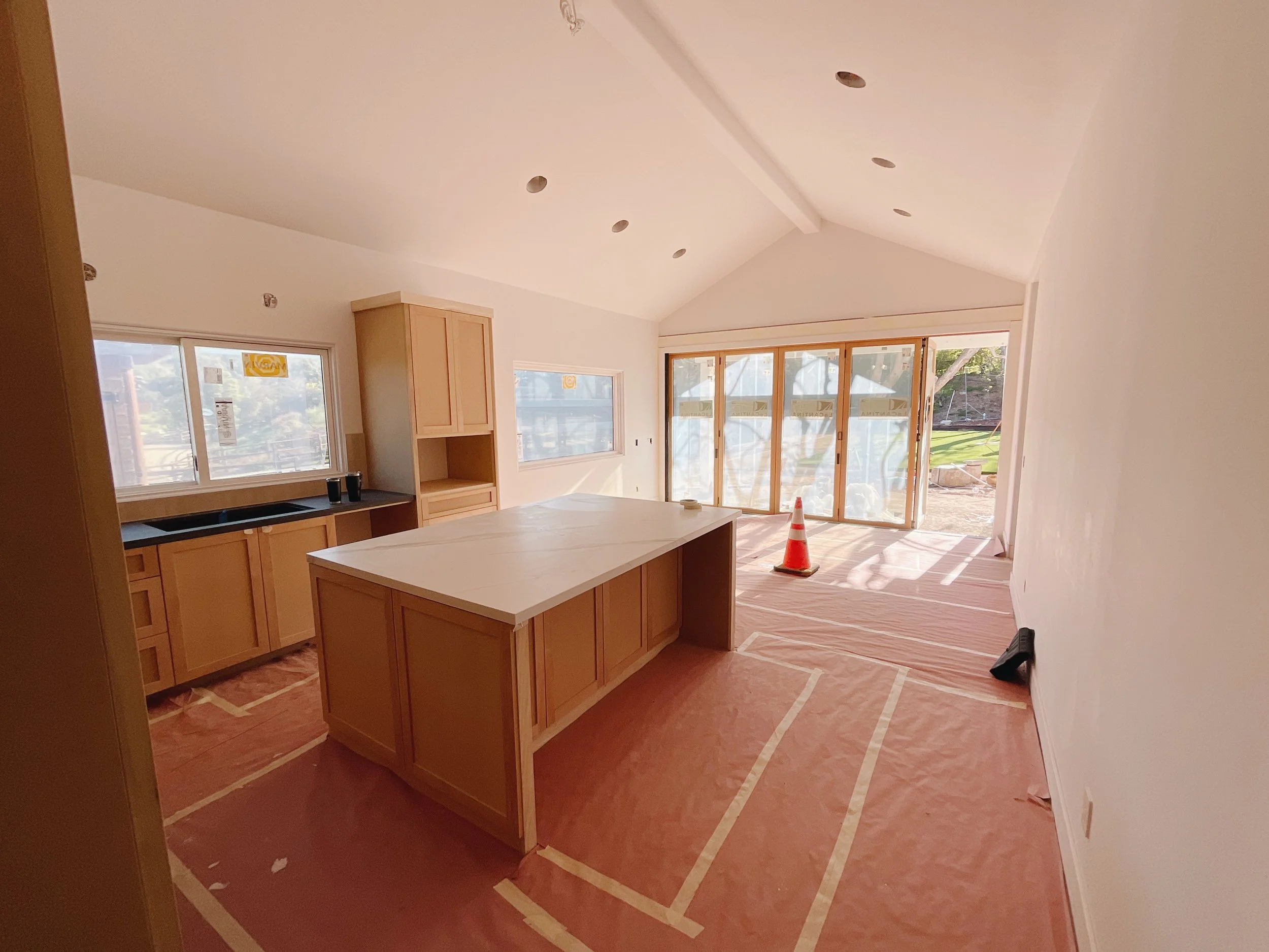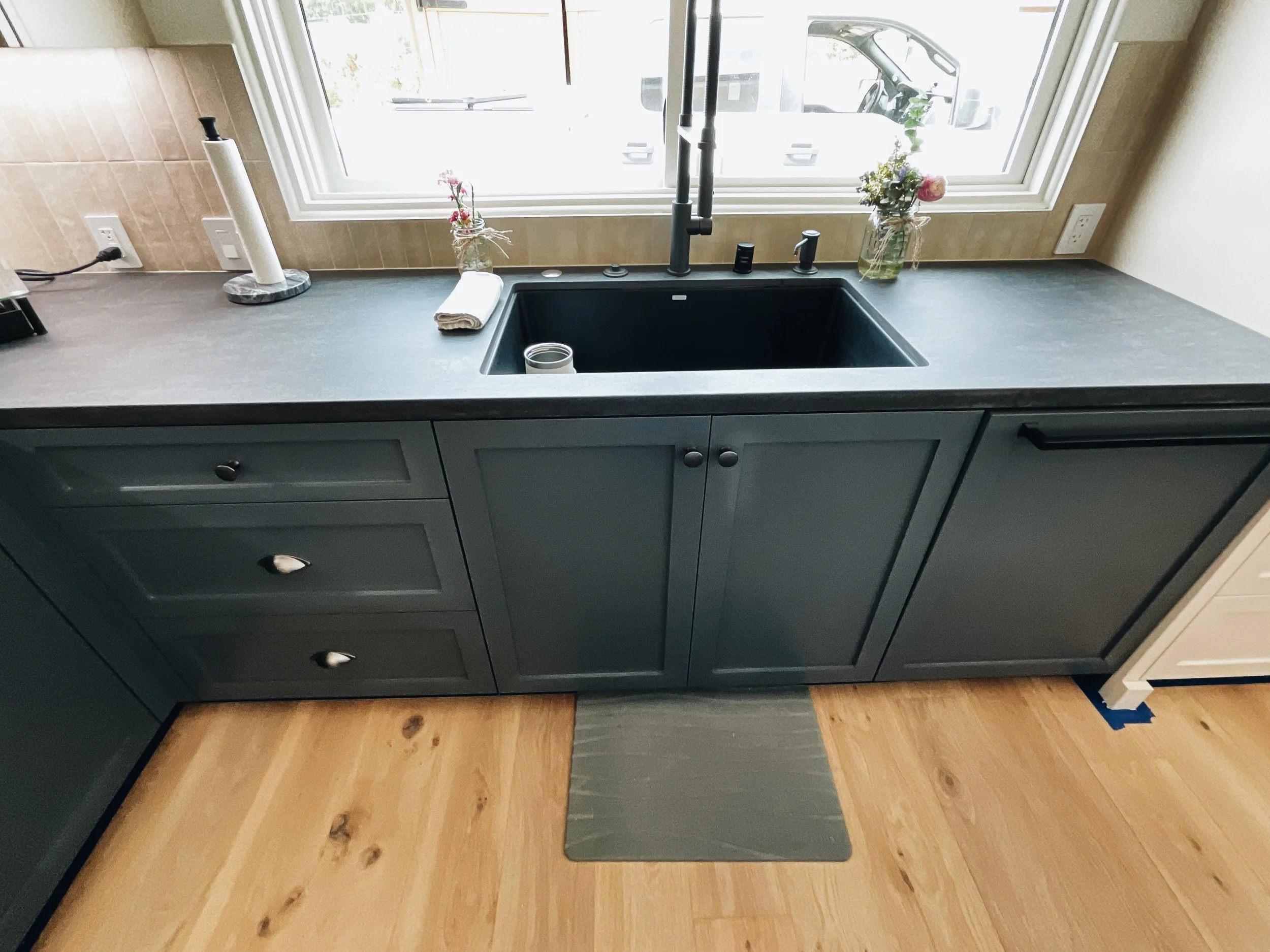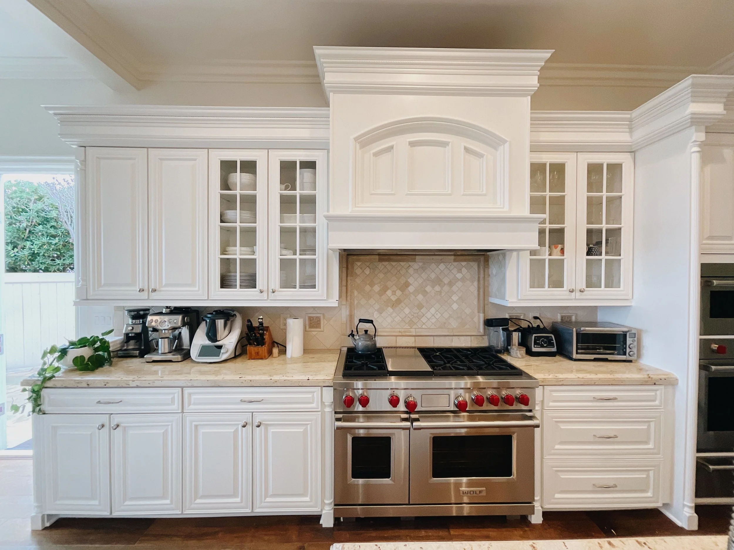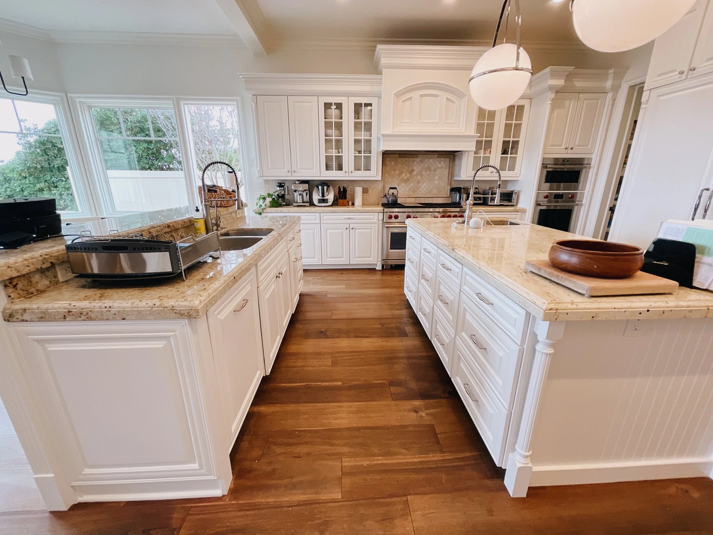 We aren’t there to paint floors, counters, or appliances. We make sure to seal those off. We only come to paint cabinets!