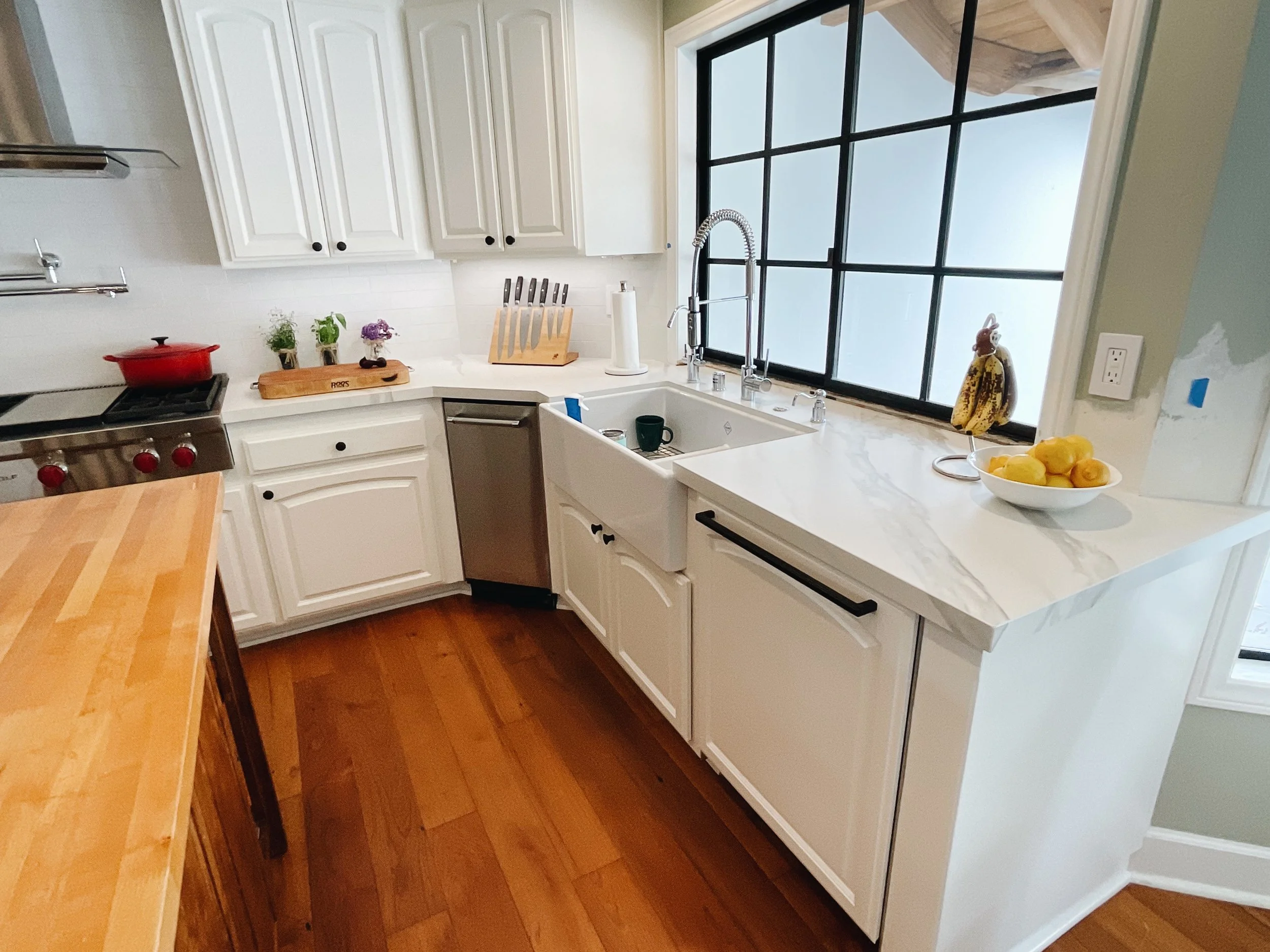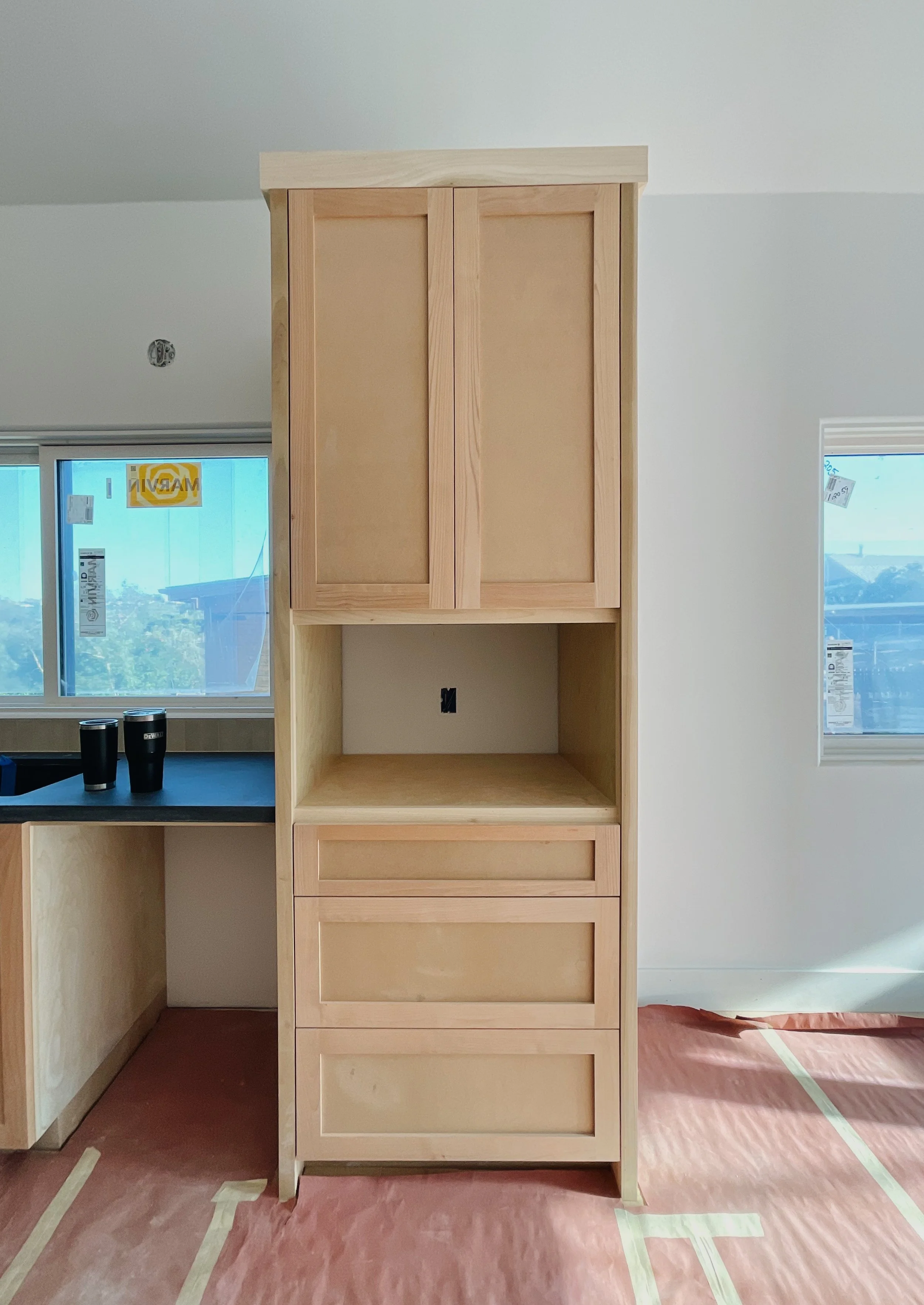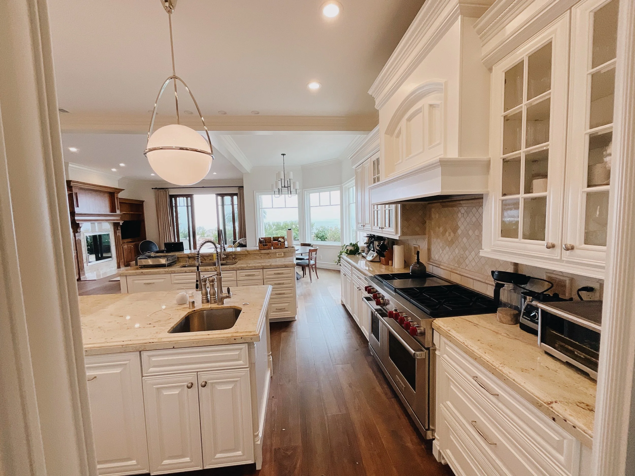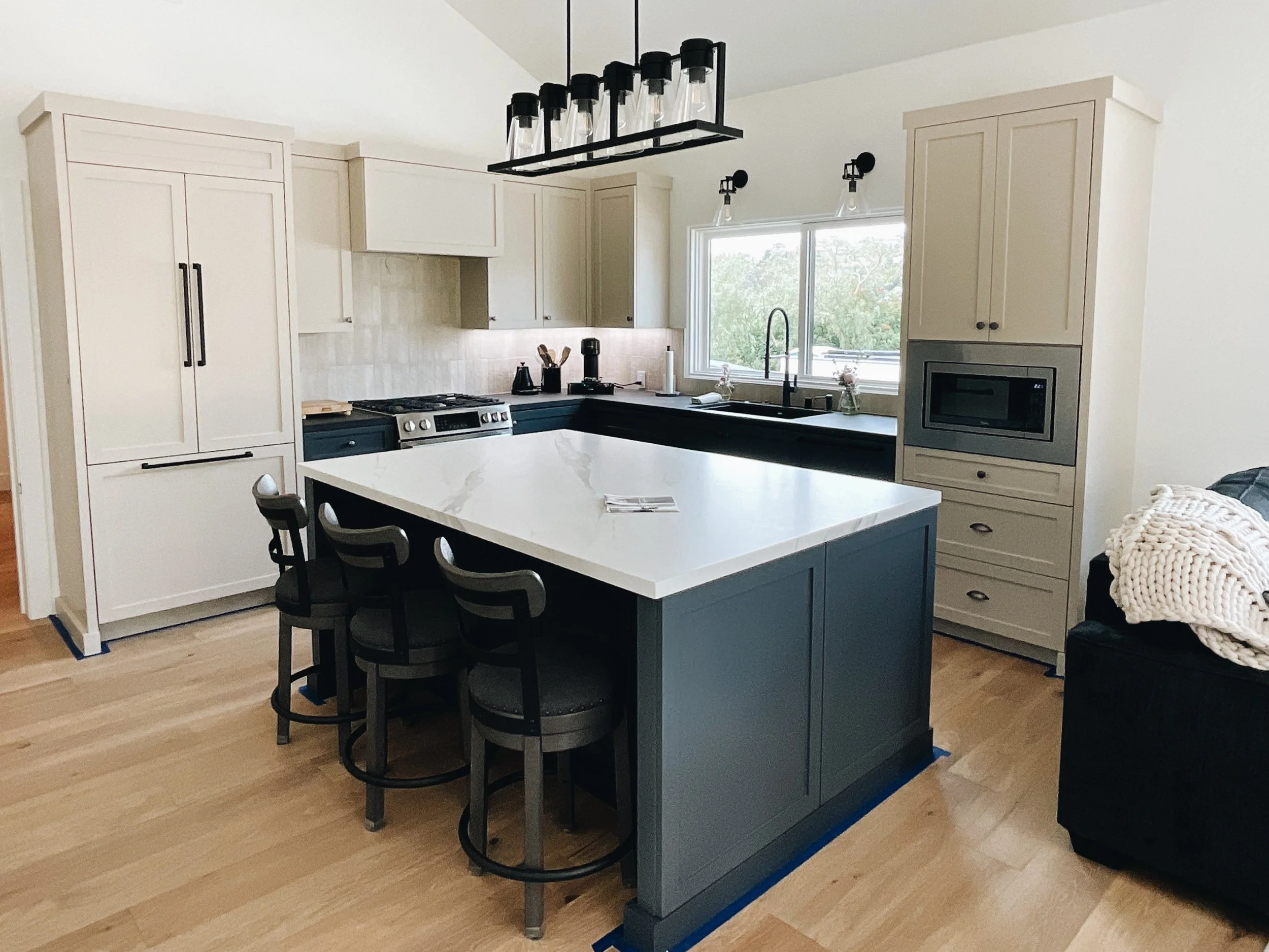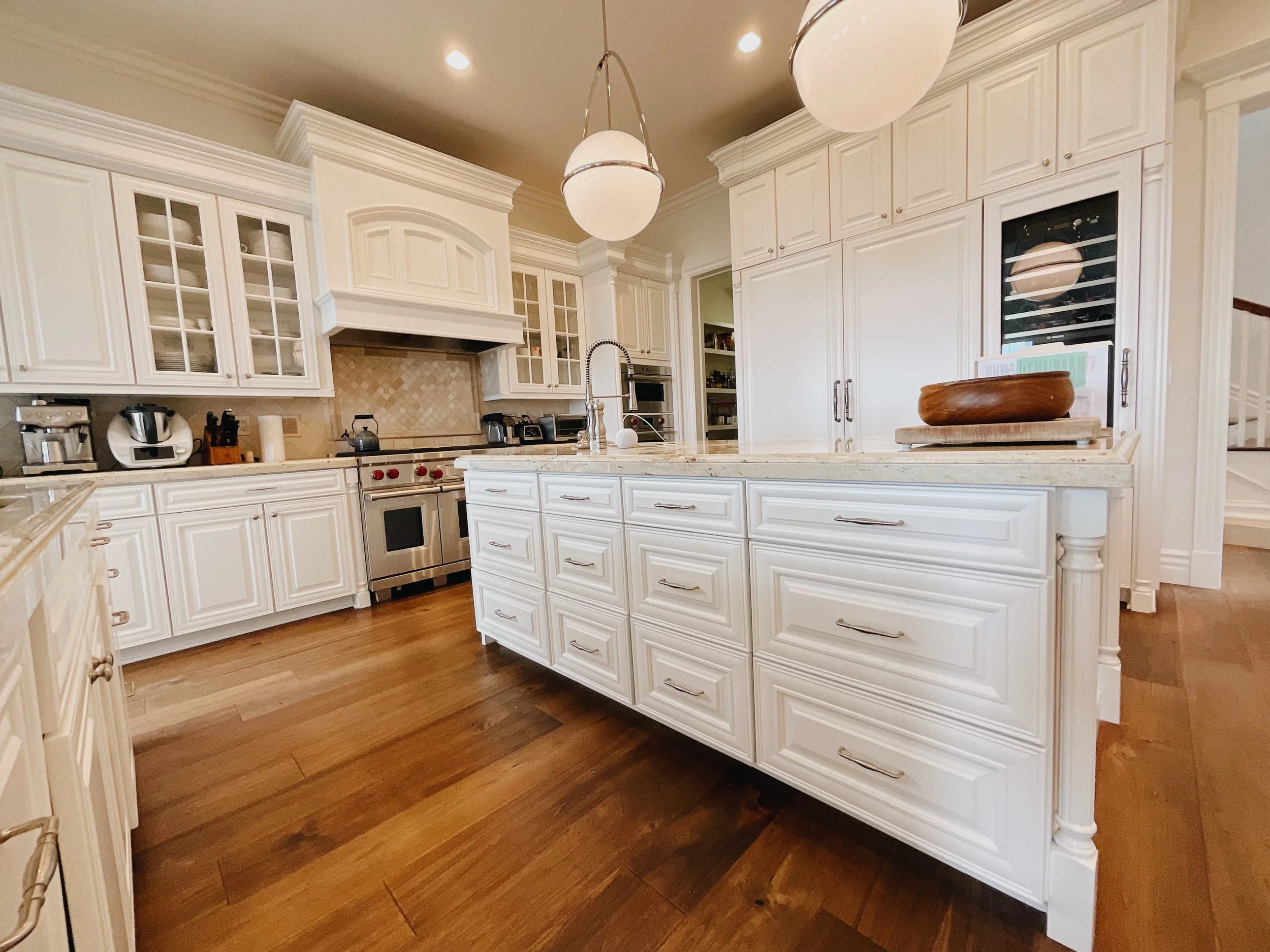We aren’t there to paint floors, counters, or appliances. We make sure to seal those off. We only come to paint cabinets!
