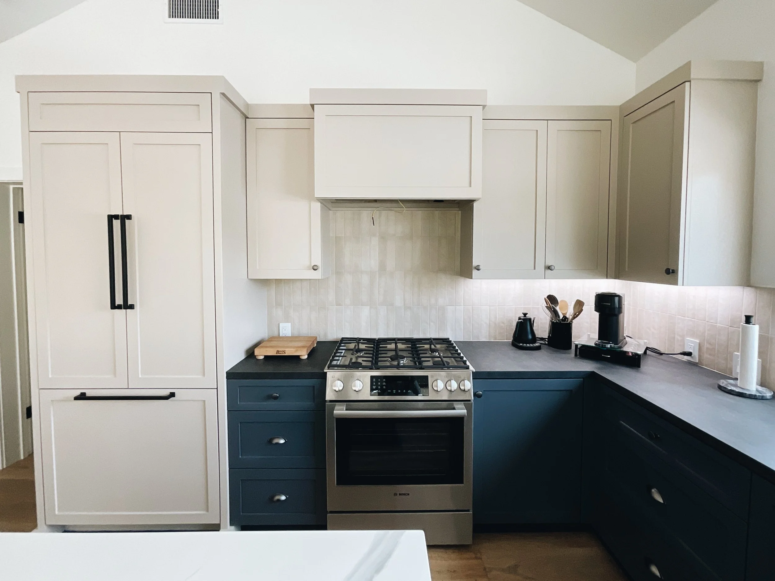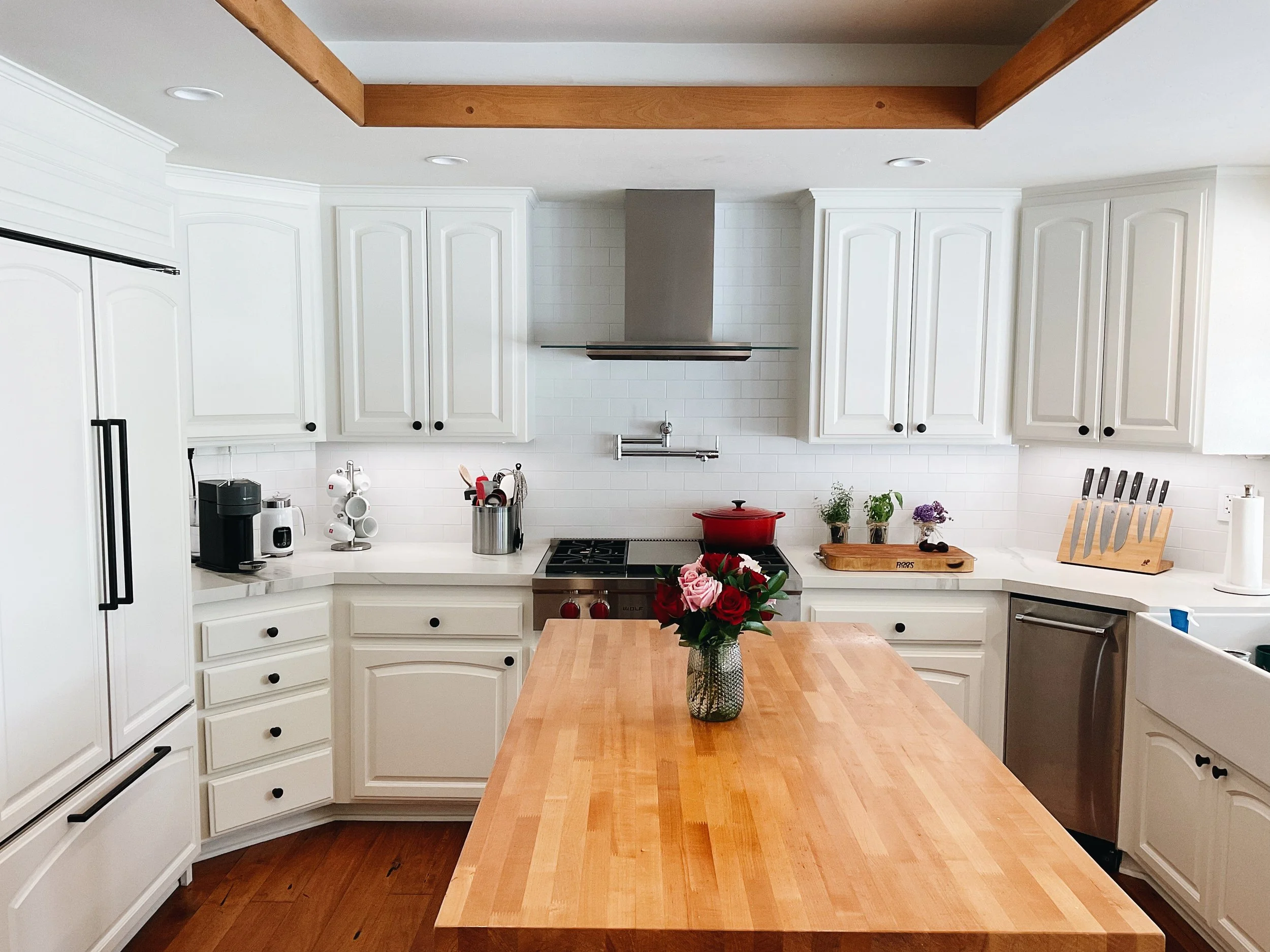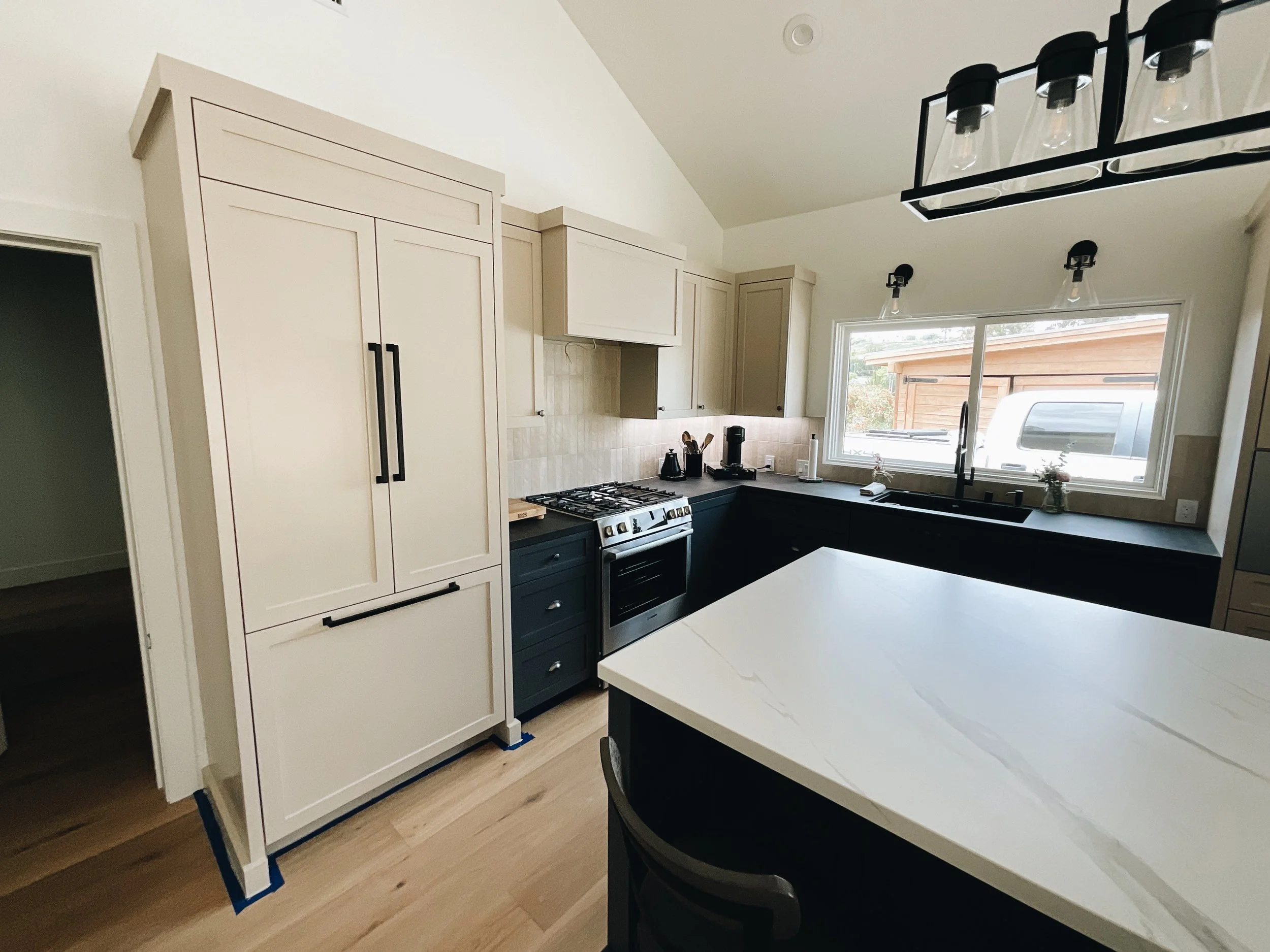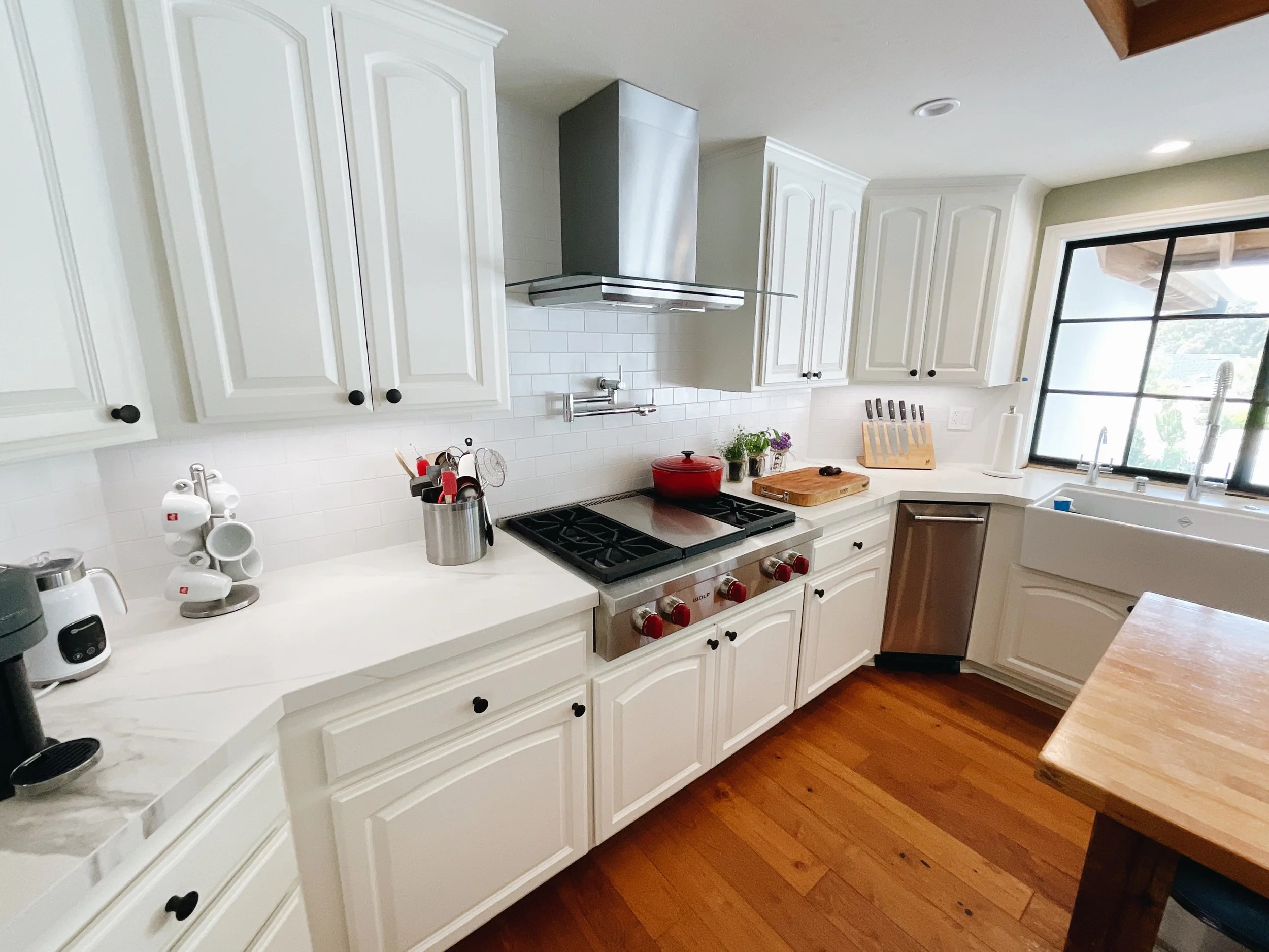We aren’t there to paint floors, counters, or appliances. We make sure to seal those off. We only come to paint cabinets!