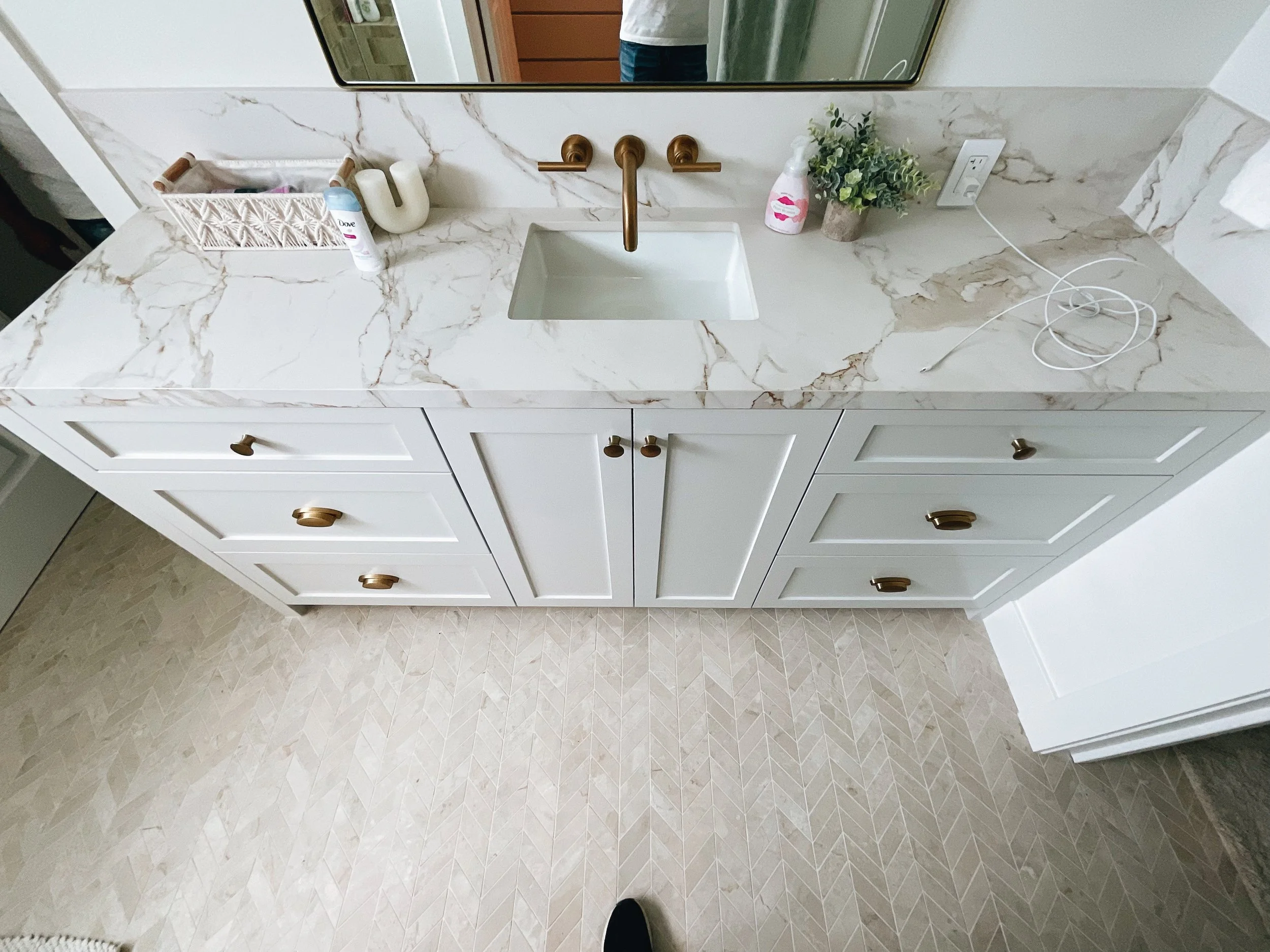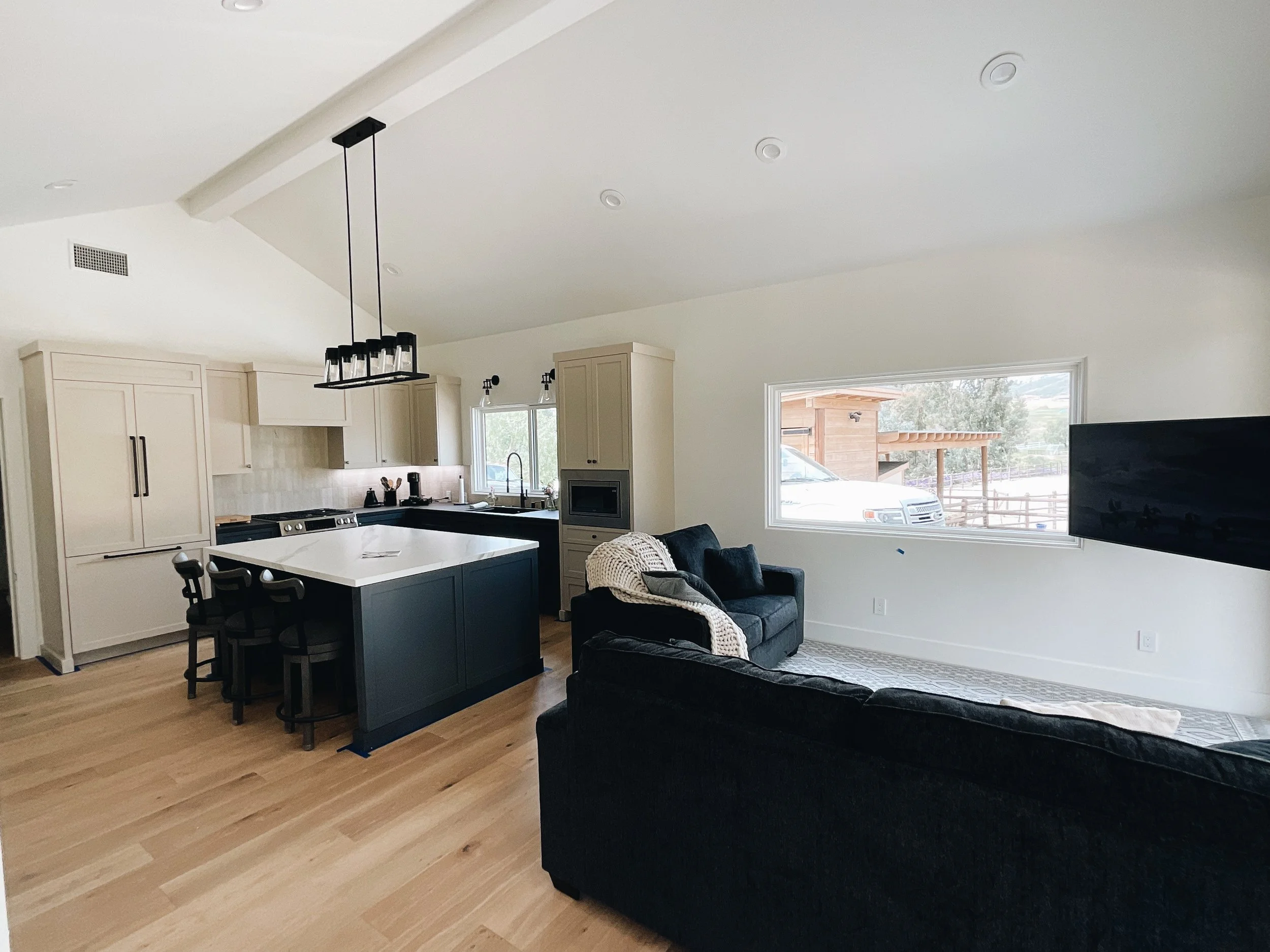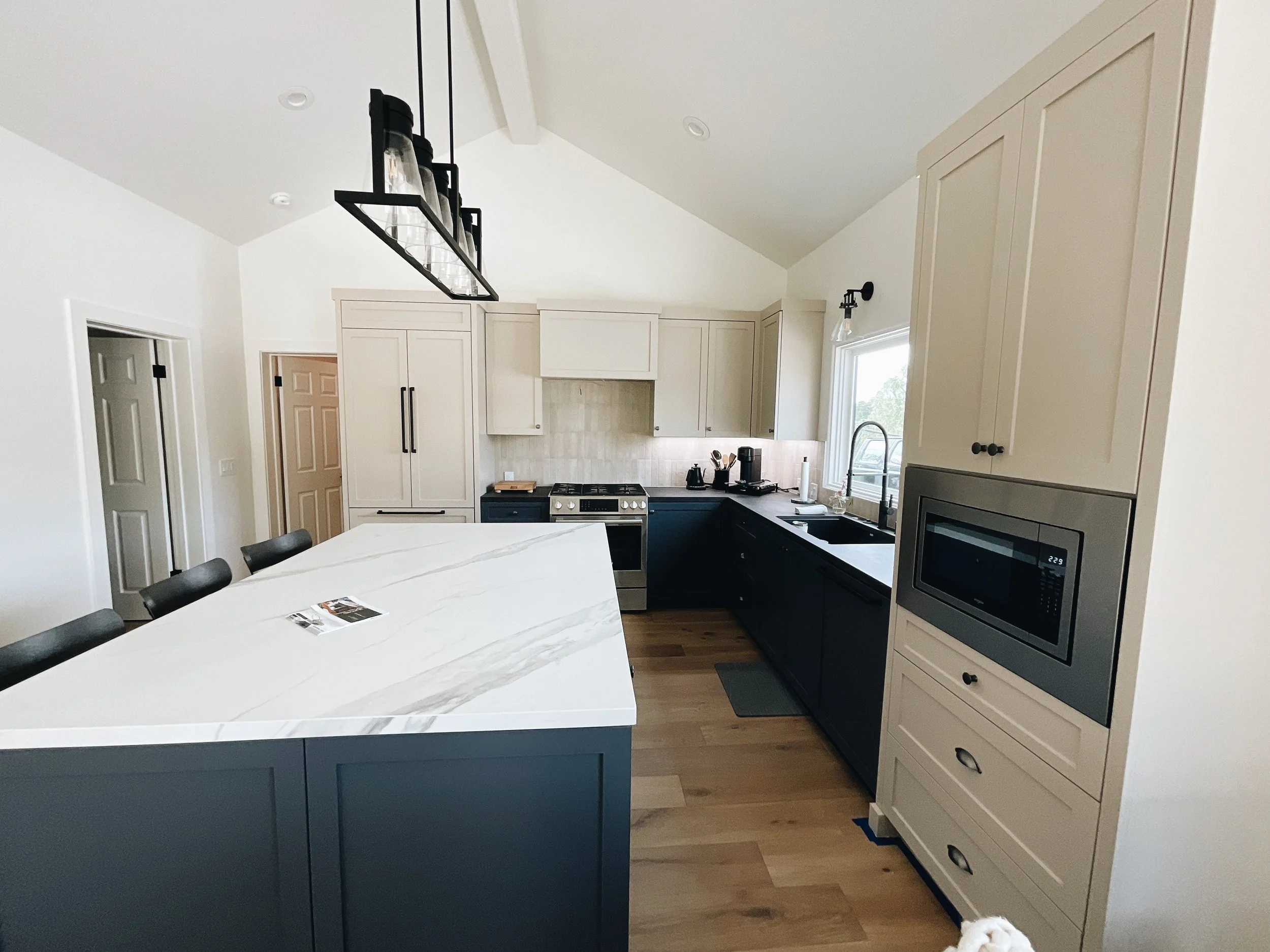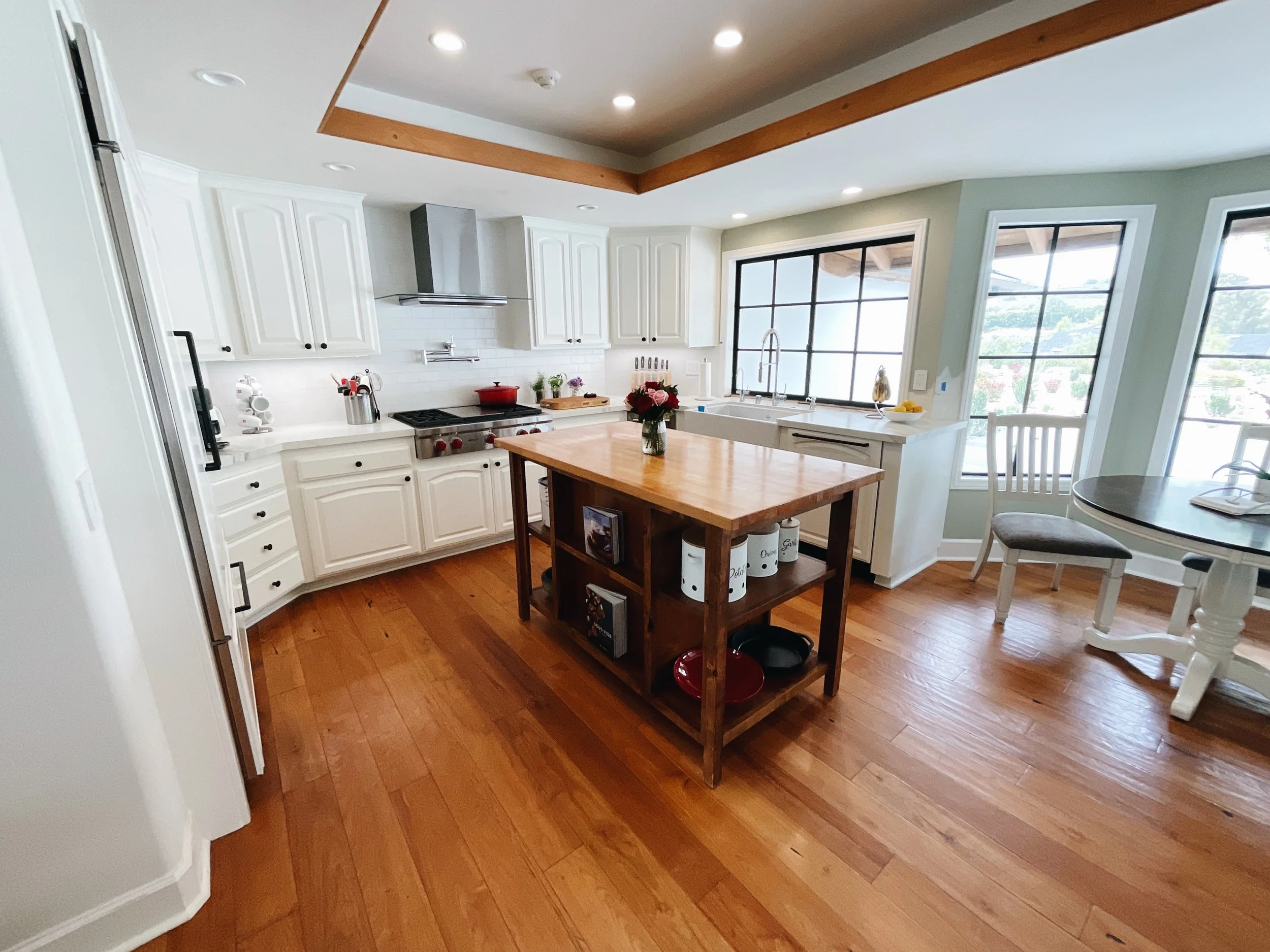 We aren’t there to paint floors, counters, or appliances. We make sure to seal those off. We only come to paint cabinets!